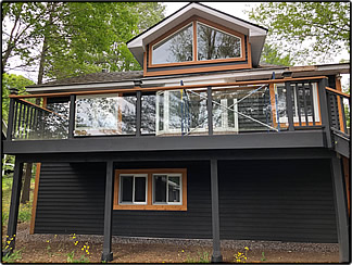 When remodeling and upgrading a deck or a Muskoka Boathouse, be sure you have a contractor that is reliable and goes the extra mile to do it right. We will take the time to do it right and remove and replace any rotten and unsafe areas. We will replace with new products from Muskoka Lumber, in Port Carling. Our glass Deck Railings will finish off the deck with a more modern look that is safe and practical. |