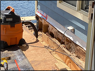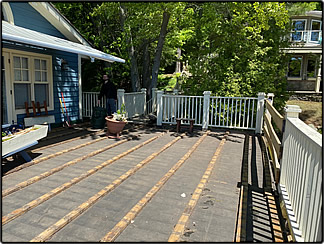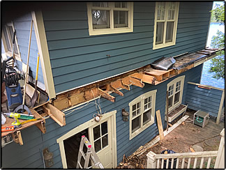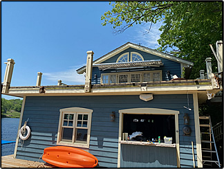 Our Contractors and staff, will work with you to design and arrange for you the perfect family dock and boathouse. Some of the older boat houses need major work to remodel them. We will remove the old damaged wood and replace it professionally. It is important that you seal the boat house roof properly if you are also installing a floating deck on it, as outlined below. |